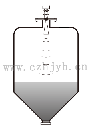 雷達物位天線發射較窄的微波脈沖,經天線向下傳輸。微波接觸到被測介質表面后被反射回來再次被天線系統接收,將信號傳輸給電子線路部分自動轉換成物位信號(因為微波傳播速度極快,電磁波到達目標并經反射返回接收器這一來回所用的時間幾乎是瞬間的)。