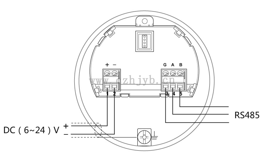 RS485/Modbus                                供電電源和Modbus信號線分開各自分別使用一根兩芯屏蔽電纜線,具體供電電壓范圍參見技術數據。
