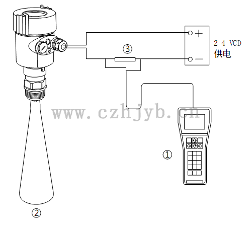 (4~20) mA/HART(兩線制)      供電電源和輸出電流信號共用一根兩芯屏蔽電纜線。具體供電電壓范圍參見技術數據。對于本安型須在供電電源與儀表之間加一個安全柵。