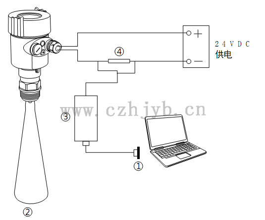 (4~20) mA/HART(四線制)     供電電源和電流信號分開,各自分別使用一根兩芯屏蔽電纜線。具體供電電壓范圍參見技術數據。